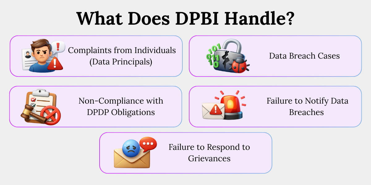 The DPBI reviews whether organizations are meeting their legal obligations under the DPDP Act.