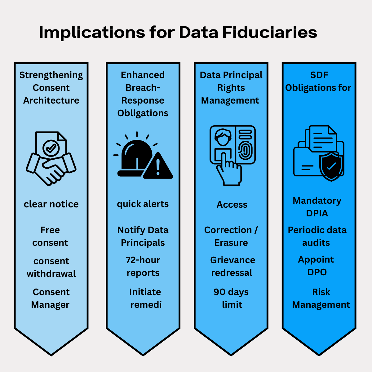 While the Draft Rules outlined broad expectations, the final DPDP Rules clearly define operational obligations for Data Fiduciaries, Data Processors, and Significant Data Fiduciaries.