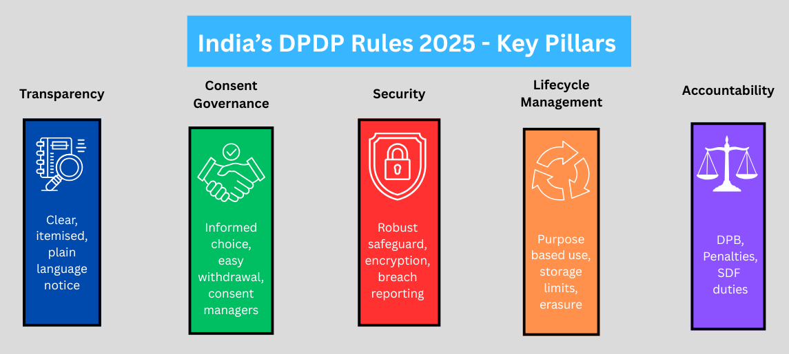 These themes closely align with global privacy frameworks while keeping India’s regulatory and digital ecosystem in mind.