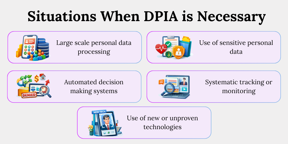 If you are deploying new technologies where risks are not fully understood, a DPIA becomes essential. For example, implementing facial recognition in a retail store without fully understanding its impact on customers would require prior assessment.