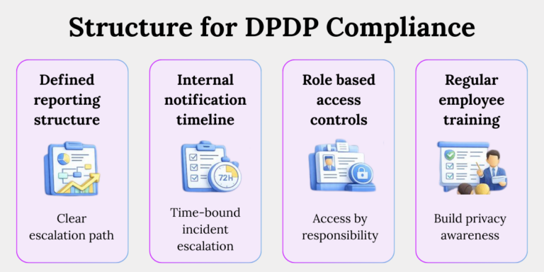 DPDP compliance requires formal governance led by a Data Protection Officer with authority, independence, and board-level access. Governance ensures privacy oversight is embedded into decision-making, breach response, and organisational culture-not delegated as an IT task.